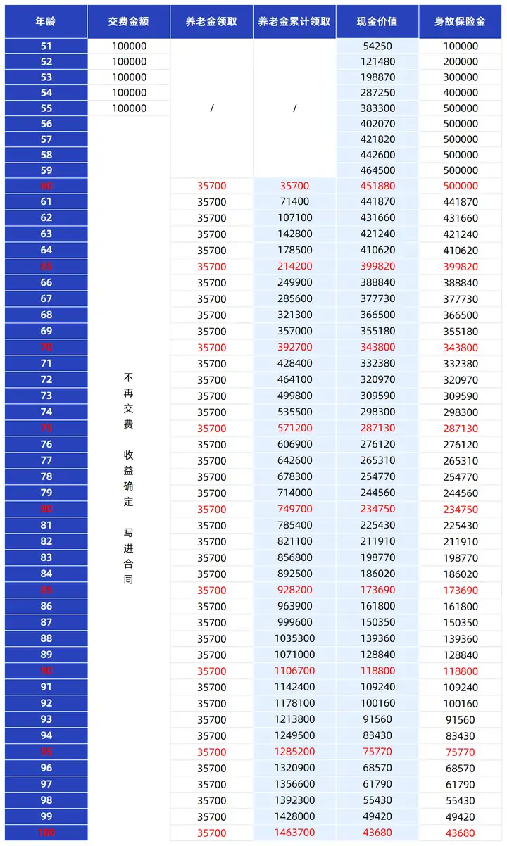 首先,不用担心会“亏”,万一不幸身故,身故保障金+累计领取不会低于你交的钱。