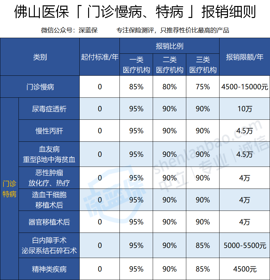 针对门诊慢病和特病,报销比例更高,但有报销限额。深蓝君整理如下表: