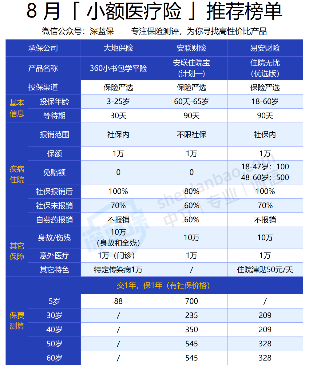 此外,年龄超过 35 岁,还可以考虑 天安成人住院万元护,虽然只报社保内,但价格会更便宜。