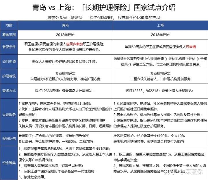 我曾去了解过青岛、上海两地的长期护理险,大致情况如下:
