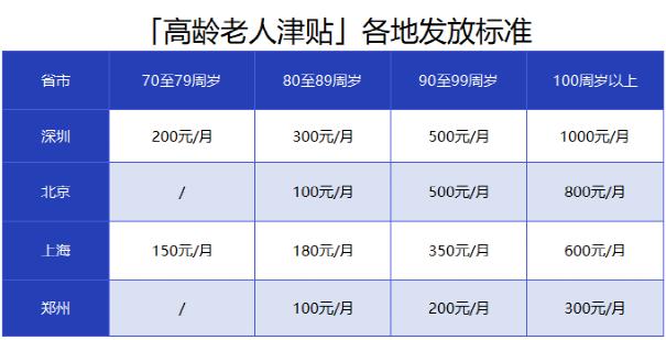 我也整理了其他城市的高龄津贴标准,大家有需要的可以先保存: