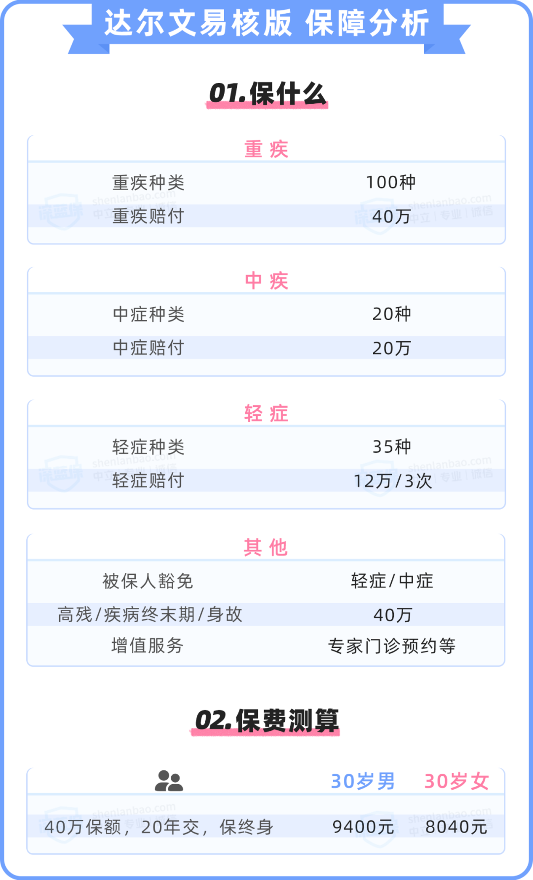 这届年轻人,工资不高,血压倒挺高...... 高血压不痛不痒,很多朋友不放心上,依然自我感觉良好,忽视了隐藏的伤害。 高血压处理不好会引发一系列并发症,买保险也是件难事。 但别担心,我们精心筛选出 高血压核保最宽松 的产品,搭配出 高性价比 的方案,大家可以参考。 简要结论如下: 我国成人高血压发生率很高,差不多每 3 个人就有 1 个人。 高血压对心脑血管的伤害极大, 要注意健康饮食及适当运动。相关科普,可点击查看>>> 那么,有高血压,哪些重疾险核保最宽松? 建议优先选择有 智能核保 的产品,可快速知道核保结果,且不留下拒赔记录。 我们精心挑选了 2 款宽松的重疾险,供大家参考。 先说结论: 高血压买重疾险,血压控制在1级以下可以正常承保;控制不好在 2、3 级波动只能加费或者拒保。 下面分别来看下产品的点评: 2 级及以下高血压, 达尔文易核版 有不同程度的加费承保。 达尔文易核版核保很友好,高血压、糖尿病、乙肝大三阳都有机会加费购买。 但该产品最高只能买 40 万保额,年纪越大能买的保额越低。详细测评,可点击查看>>> 1 - 3 级高血压买 长生优加(升级版) 都有机会正常承保,但 2 级及以上需稳定控制血压状态。 长生优加(升级版)重疾不分组,多次获赔的概率大大提高。 但吸烟饮酒及直系亲属患病情况也会影响到核保,投保时需注意。详细测评,可点击查看>>> 我们精心挑选了 2 款宽松的医疗险,供大家参考。 先说结论: 高血压投保普通医疗险很难,但有专门针对高血压患者的专属医疗险。 下面分别来看下产品的点评: 在服药情况下,满足收缩压≤170 mmHg,舒张压 ≤ 105 mmHg,高血压患者专享医疗 能正常投保。 投保 高血压患者专享医疗 后,因高血压引起的疾病,治疗产生费用也能报销。 但续保需要审核,如果身体变差或发生理赔,可能无法续保。详细测评,点击可查看>>> 该产品可在支付宝搜索「 高血压患者 」找到。 高血压患者,不管你有没有服药,都有正常购买 微医保长期医疗 的机会。 我们根据 核保宽松、高性价比 这两个维度,给高血压患者配置了一套方案。 一起来看下方案配置的思路: 带病投保,优先解决能不能买到保险的问题。在此基础上,再进一步选到保障更好的产品。 对 30 岁高血压女性患者来说, 5000 块出头能配齐四大险种,保障还是很不错的。 如果血压只比正常高一点点,还在 1 级高血压(<160/100mmHg)范围内,可以挑选性价比更高的产品。 关注微信公众号:江南app官方下载苹果