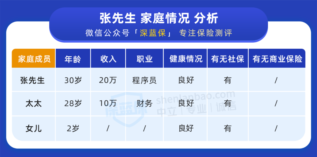 在配置保险前,我们要先了解下张先生家人的具体情况。