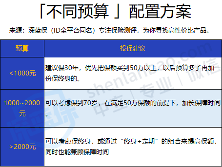 深蓝君已经进入保险行业多年,在给上万个家庭配置保险后,我们发现很多人给孩子买重疾险的思路都是错的。 有的父母认为给孩子买重疾险越贵越好,于是不惜花好几千甚至上万元给孩子买重疾险 。事实上90%的父母都不知道,儿童重疾险非常便宜,最少一年几百块就能搞定。 那么,怎么给宝宝买重疾险?要关注哪些方面?下面我就来和大家说一下。 像癌症、脑中风等28种最高发的重疾,都是国家规定必须要保的,而它们也确实占到了95%以上的理赔,不管你买哪家的重疾险都有这些病种 ,赔付标准都是一模一样的。 所以,不用担心! 那孩子的高发重疾和成人不大一样,不能一味地按成人重疾险的标准去挑,还要再看看针对少儿的高发重疾。 根据以往的理赔数据和医学材料,我们整理了最高发的16种少儿重疾: 大家可以保存收藏一下这张图片,以后给孩子买重疾险,可以拿出来对比一下。 像白血病、川崎病、严重癫痫,其实都是很高发的少儿重疾。最好买对这些特疾 能够翻倍赔付的产品,比如50w保额 能翻倍赔付100w。 另外,像高发轻症也要尤其注意,比重疾更常见和多发,治疗费在10万左右,也是一笔不小的支出。 虽然轻症的病种还没有完全统一,但根据理赔数据,以及跟核赔老师的多次沟通,我们也总结了儿童最高发的8种轻症: 大家按上面的表格去挑选,孩子在重疾和轻症保障方面,就基本没问题了。 小孩常见的重疾,特点就是两高一长,即治愈率高、治疗费用高、治疗周期长。 像儿童白血病一般需要治疗2~3年,费用大概在20到60万之间。 小孩生病,父母都得辞职照顾,这期间就没有收入了。 咱们买的保额呢,也要能够抵消这段时间的收入损失。所以,我们一般建议保额30万起步 父母们要注意听了,预算多的优先保终身,预算不多的保定期。如果预算不够,千万不要为了保终身压缩保额,这样就是本末倒置了。 同样600块钱,选终身的只能买15万,选定期的却能买到50万。 风险来的时候,钱够用才是最重要的。如果只保定期不放心,以后有预算了再加保也可以。 不同预算怎么配置最好,通过大量的案例和计算,我们整理了三种解决方法,大家可以对号入座一下: 深蓝君还是要再叮嘱一句:一定要避开垃圾产品! 爸爸妈妈们都有一个误区,以为东西只要买贵了就是买对了。 但如果你买的是什么捆绑、分红、返还的产品,那这些除了贵得要死 保障还很差,建议大家千万不要碰 ! 给宝宝买保险,一定要记得勾选投保人豁免。 举个简单的例子: 小刘给孩子买了份重疾险,那他就是投保人,万一小刘得了重疾,或者发生意外人没了,那儿子的这份保险就不用交费了,保障依然还在。一、关注少儿高发病种