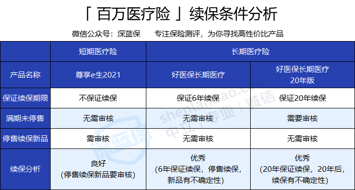 1月11日,银保监会下发了《中国银保监会办公厅关于规范短期健康保险业务有关问题的通知》。不符合该《通知》要求的百万医疗险,都会在2021年5月1日前停售。 医疗险停售,第二年就没办法继续再买了,不仅得不到以前的保障,续保新产品也会很麻烦。为此有不少朋友担心自己买的百万医疗险,受不受影响?万一真的停售了,该怎么办? 今天,深蓝君就来说一下这件事,百万医疗险停售了怎么办?为什么会停售? 这一波产品停售,其实是监管的要求,目的是为了维护大家的利益。深蓝君找到监管部门发的通知,给大家简单解读一下。 很多保险公司为了提高自己产品的竞争力,经常会用“可以续保到99岁”来吸引大家。但是,有些保险业务员却把它宣传成保终身的产品,很多人就会被误导购买。 于是,银保监会对各保险公司做了统一要求,发布了《健康保险管理办法》,其中明确规定:短期健康保险是指保险期间为一年以及一年以下,且不含有保证续保条款的健康保险。 今年年初,银保监会对短期健康险的续保、定价、销售等又做了明确要求,补充发布了《关于规范短期健康保险业务有关问题的通知》,不符合通知要求的短期健康险,要在5月1日前停售,并且要在停售前30天公开通知。 我们平时接触最多的短期健康险,就是保1年的百万医疗险。其中,最容易让人产生误解的就是续保。 再次提醒大家,这次整改的是短期健康险,对长期医疗险,像好医保长期医疗险这种长期的医疗险不受影响。 4月份开始,就陆续有保险公司发出“产品停售”的通知: 要是自己买的产品要停售了怎么办呢? 1、已经收到停售通知,该怎么办? 如果产品停售,保险公司一般会有两种处理方式: 提供转保服务:比如保险公司提供新产品,免健康告知、免等待期直接续保新产品,这种方式是比较好的,至少能让你保障不会中断,但也要看保险公司的具体政策。 给出转保建议:保险公司会告诉你哪些产品可以买,不过要重新通过健康告知和等待期。如果身体健康变差了,就有可能买不了。 不管是哪一种方式,深蓝君建议大家着重关注新产品的保障、续保条款。 2、没收到停售通知,但产品不符合要求 有的朋友反馈说自己买的产品不符合要求,但没有收到停售通知怎么办? 像好医保住院医疗(1年)、微医保2020,这两款产品确实有不符合要求的地方,比如说,投保页面显示有“自动续保”的描述。 不过大家不用担心,根据银保监会的规定,只要保险公司在5月1日前调整好,符合最新要求,就可以继续销售。 1、看有无“保证续保” 我们可以将百万医疗险分为短期和长期的,短期指的是交一年、保一年,没有保证续保条款的;长期指的有保证续保条款的,一般是6年或者20年。 一年期的产品会写明“本合同为非保证续保合同”;长期的产品(比如20年)会写明“保证续保期间为20年”。 长期的百万医疗险要比短期的更稳定、更靠谱。 2、看续保细节 除了保险期间续保条款,续保细节也不能忽视。 比如说,尊享e生2021是一年期的产品,期满续保无需审核,但如果产品停售,续保新品就需要重新审核。 好医保长期医疗(6年)期满续保无需审核,20年版的期满续保就需要重新审核。无需审核就比需要审核的好一些,不用担心因为自己身体状况变差而不能续保。 如果只是一味追求保障时间,就选择保证续保20年的产品。 不同的产品对它的续保要求都会有所不同。所以,我们在挑选百万医疗险时,一定要看清楚续保条款的一些细节,才能买到适合自己的百万医疗险。一、为什么有的百万医疗险会停售?