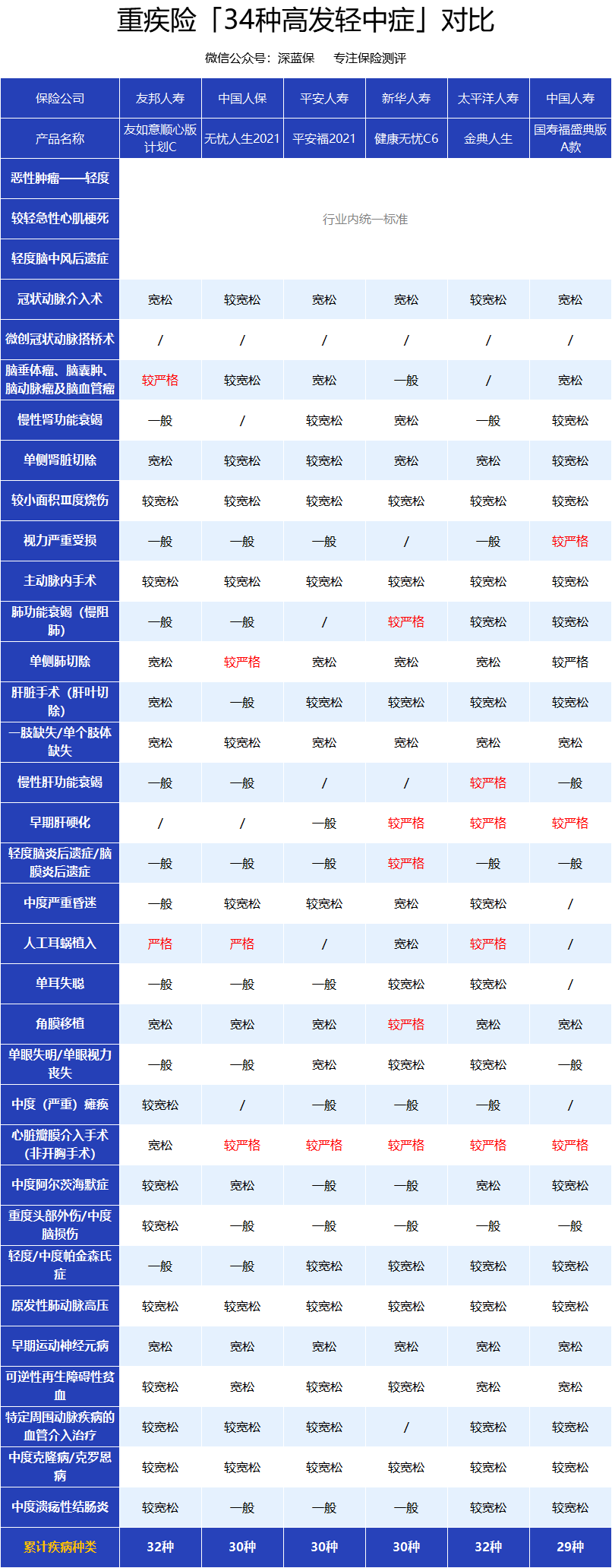 (标红和打斜杆的地方红色表示赔付严格,斜杆表示没保这个病种)