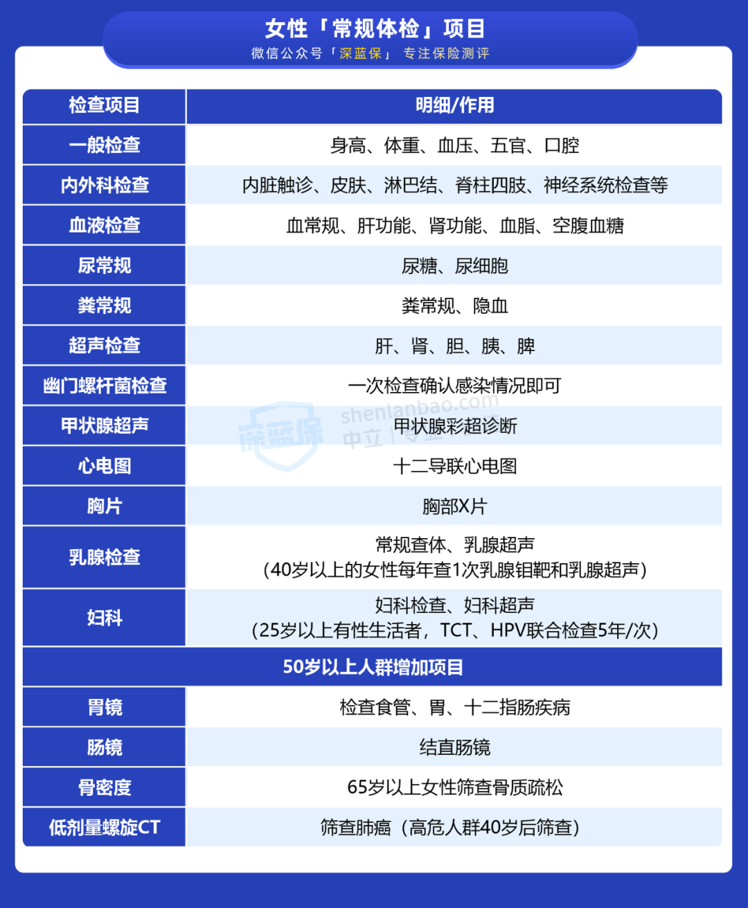 我们咨询了内部的医学专家,也问了身边的医生朋友,最终整理出以下 常规体检项目表: