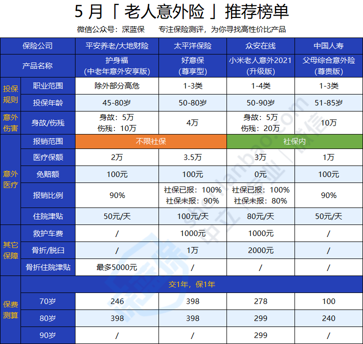 市面上的意外险有很多,深蓝君针对成人/儿童/老人的保障需求,挑选几款高性价比的产品供大家选择。