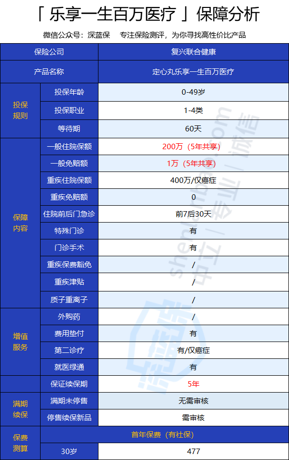 定心丸乐享一生百万医疗就是其中一款,它是由复星联合推出的可以保证续保5年的长期医疗险。