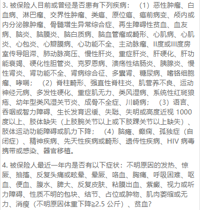 第三条是关于疾病史的问询,我们要留意到一些少儿常见的高发的疾病是在告知范围内的。