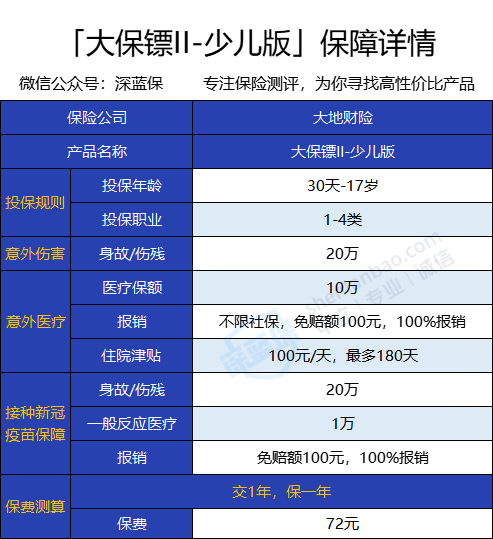 大保镖II少儿版适合0-17岁的孩子购买,但是它最高只有20万的意外伤害保额。