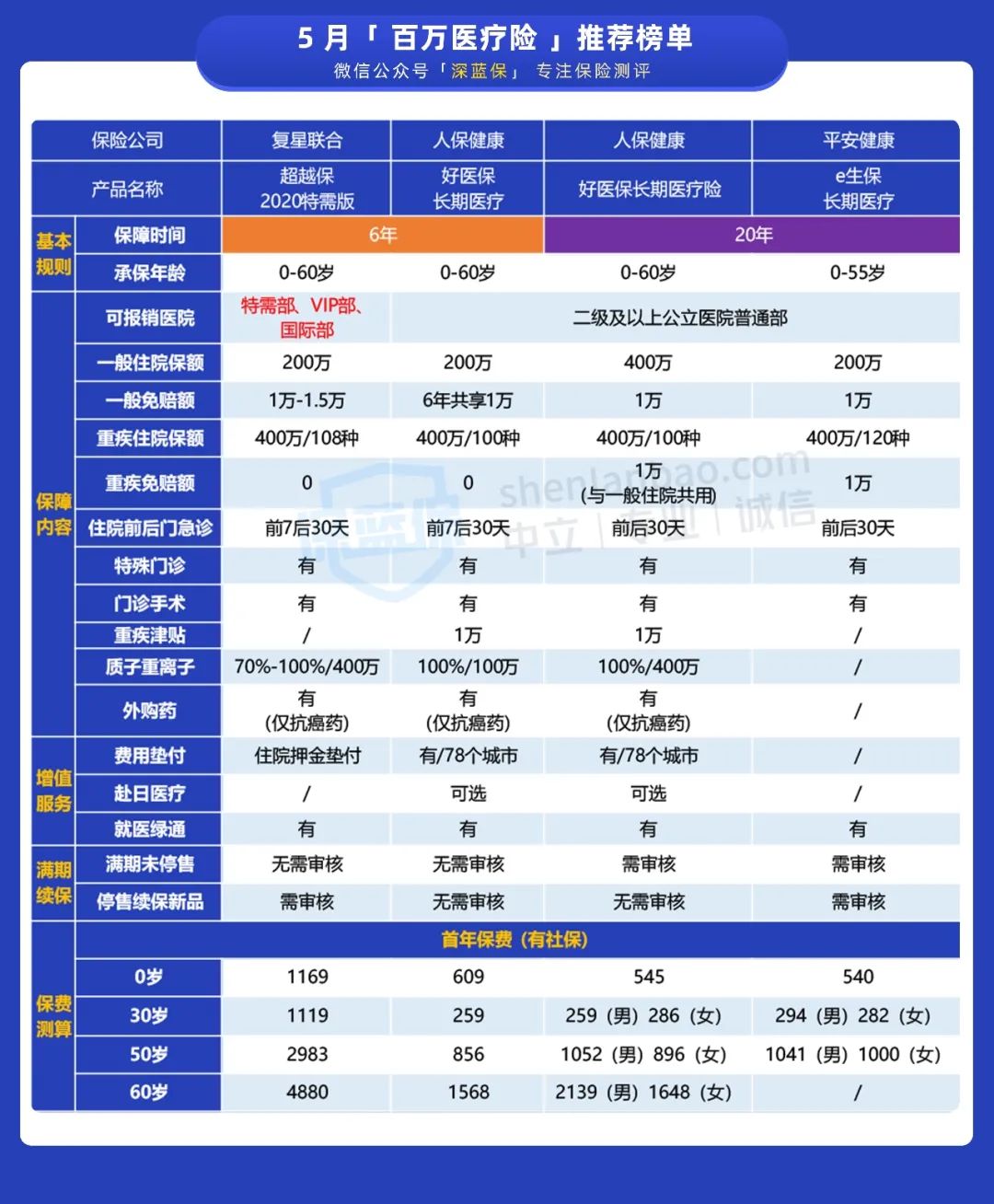 百万医疗险有多便宜,我们来看看热门的医疗险推荐榜单: