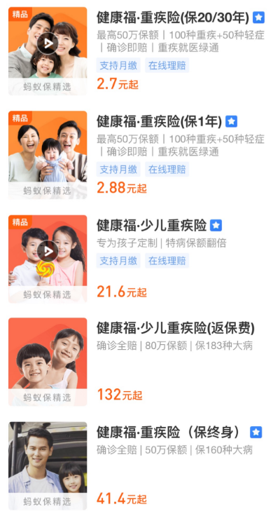 这些产品虽然都叫健康福重疾险,但其实它们背后的承保公司是不同的,即健康福就是支付宝上一系列重疾险产品的统称。