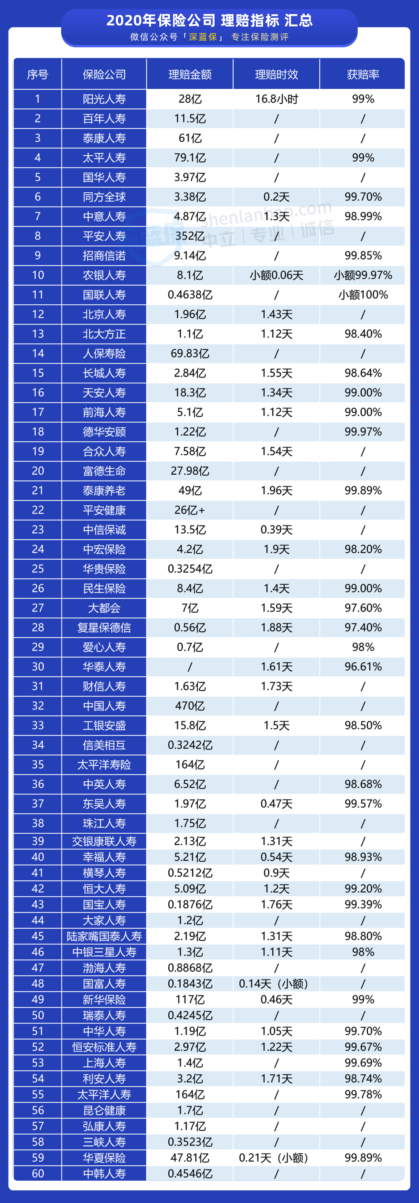 可以看到,无论是大公司还是小公司,各家公司理赔速度都不慢,只要符合理赔标准,基本都是可以获得赔偿的。