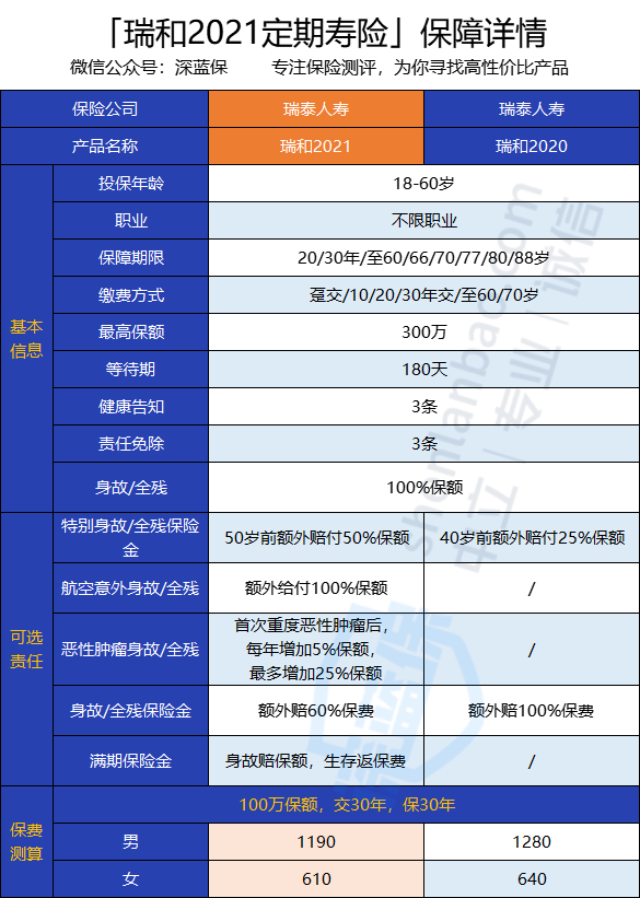 作为定寿界的热门产品,瑞泰瑞和定期寿险上市以来,一直保持优势,瑞泰瑞和2021更是比旧版在价格更有优势,购买更实惠!