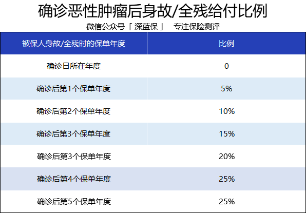 其中,确诊恶性肿瘤后身故或全残可以额外获得一定比例的赔偿,最高附加赔偿可达25%。
