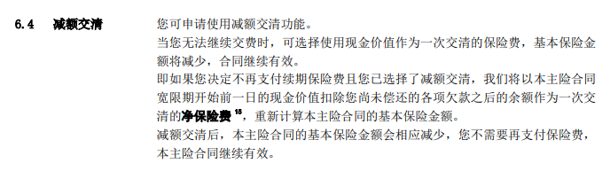 提醒一下大家,减额交清只有部分产品才有,你可以在产品中看到如下条款: