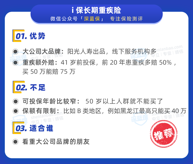作为大公司的 阳光 i 保长期重疾险,虽然保障上比不上前面几款,但总体够用。