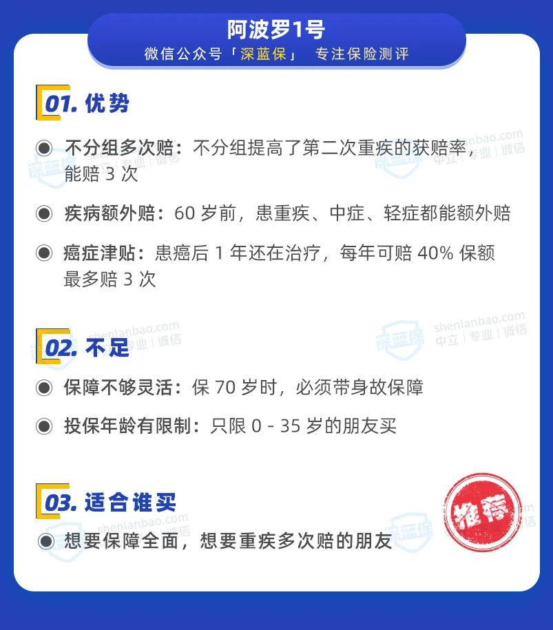阿波罗 1 号 是昆仑健康新出的不分组多次赔产品,它的优势和不足是: