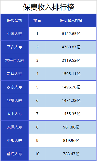 一、保险公司收入排名