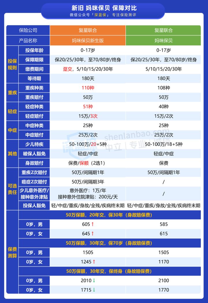 在重疾险新定义出台后,妈咪保贝也做了升级,推出了妈咪保贝新生版。