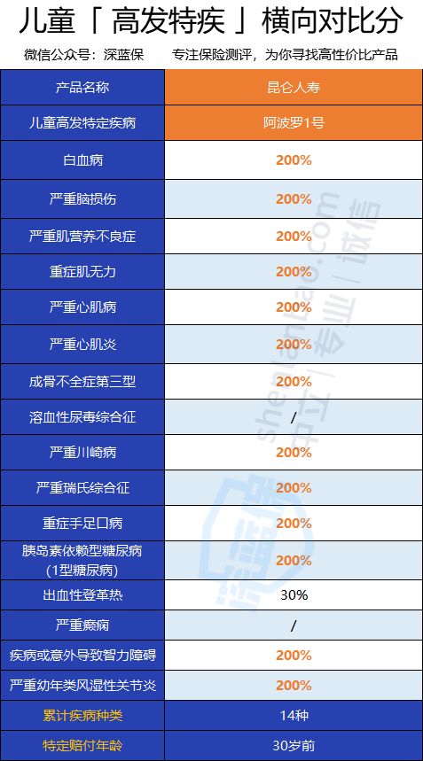 阿波罗1号重疾险规定,30岁前,首次确诊25种少儿特疾中的疾病,可额外赔100%保额,也就是赔双倍。