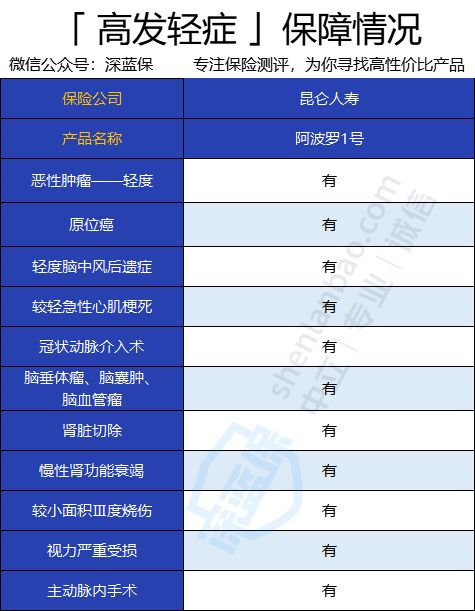 关键在于,阿波罗1号对高发轻症覆盖的很全面,这样获赔的概率就更大。