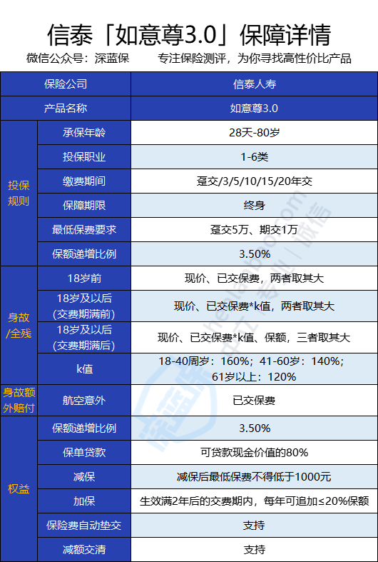 先来简单了解一下信泰如意尊3.0的保障详情: