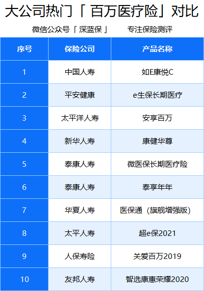 我们挑选了十大保险公司的热门产品进行对比: