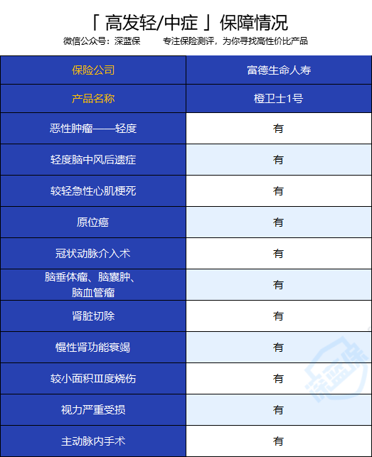 橙卫士1号是富德生命人寿旗下的一款重疾险。在深蓝保的测评中,这款重疾险也是一款高性价比的产品,保障齐全、赔付力度大。这款产品经过升级,本文所用内容是其升级后的版本