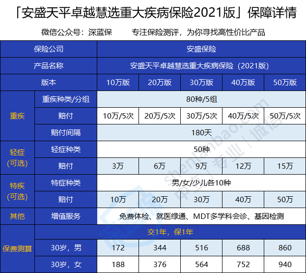 为方便大家查阅,深蓝君将这款产品的保障内容整理成表格,如下: