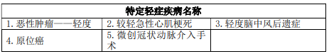 条款中所说的“特定重大疾病”是指恶性肿瘤—重度、较重急性心肌梗死、严重脑中风后遗症和冠状动脉搭桥术(或称冠状动脉旁路移植术)这4种疾病。