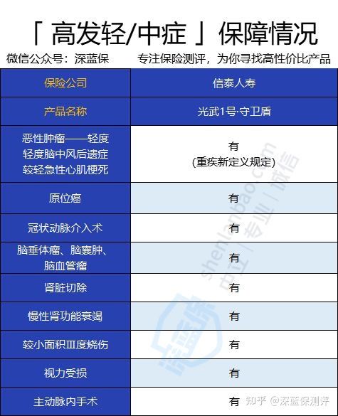 信泰光武1号·守卫盾是一款单次赔付重疾险,保障灵活可选,重疾为必选保障责任,轻症、中症、恶性肿瘤津贴及二次赔、心脑血管疾病二次赔、身故责任,均为可选保障,可以按照自己的预算和需求来选。
