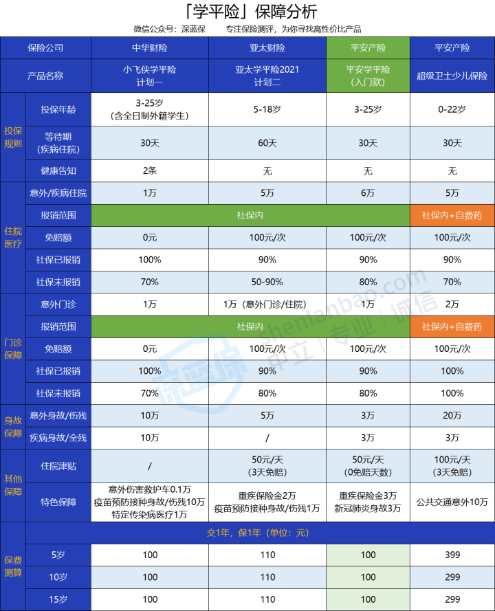 亚太学平险2021 虽然价格便宜,但它只报销社保内的费用,最高报销 90%,而且60 天的等待期也更长,相对于其他两款优势不大。