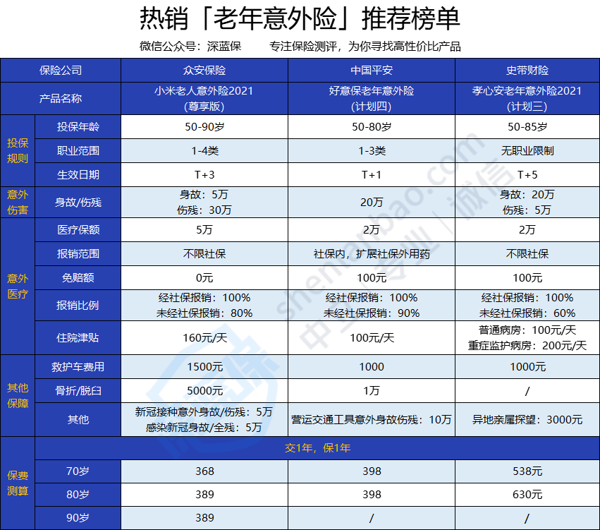 今天深蓝君和大家聊聊老年意外险买哪个好,一起来看看吧。