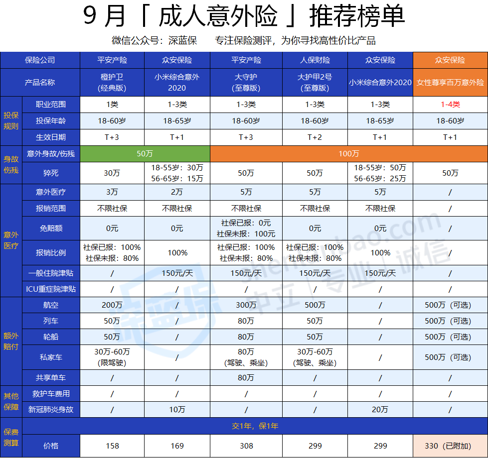 深蓝君挑选了几款高性价比的意外险和它对比,看看它值不值得买。