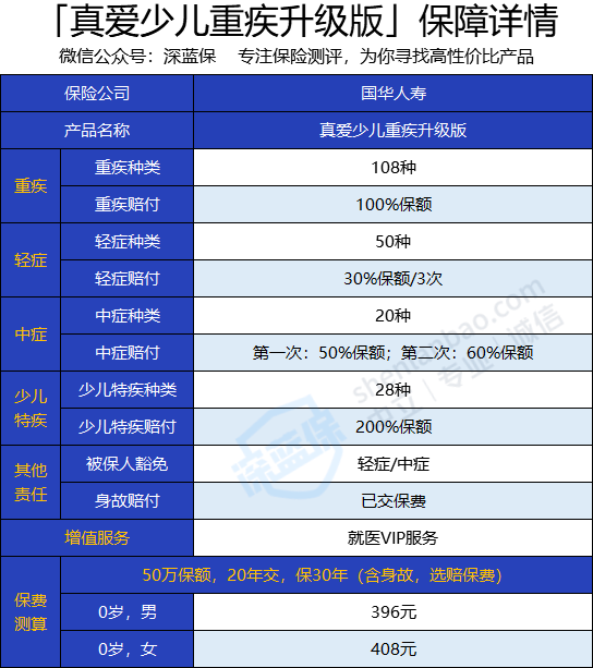 2、国华人寿真爱少儿重疾升级版
