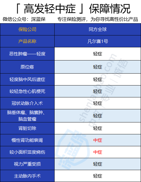 此外,凡尔赛1号重疾险对于高发轻中症的保障也非常全面,可以看到,基本上没有缺失任何高发疾病,很nice。