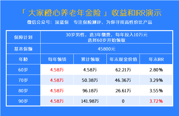 听起来还不错,那么这款大家橙心养老年金险到底怎么样?退休能领多少钱?用来养老合适吗?