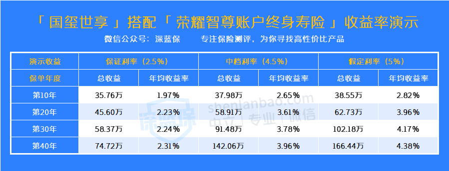 这里深蓝君也要提醒大家:如果要附加万能账户,那么我们应该着重关注保底利率。这是保险公司承诺给到我们的收益。
