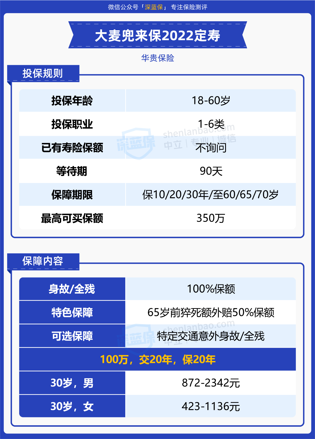 大麦兜来保 2022 是华贵保险新上线的定寿,与去年的版本相比,价格没有太大的浮动。