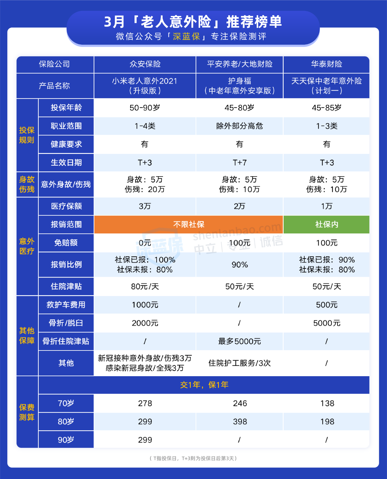 另外,如果预算有限,也可以考虑 天天保中老年意外险,一年不到两百块,不过这款产品只报销 社保内 的费用。
