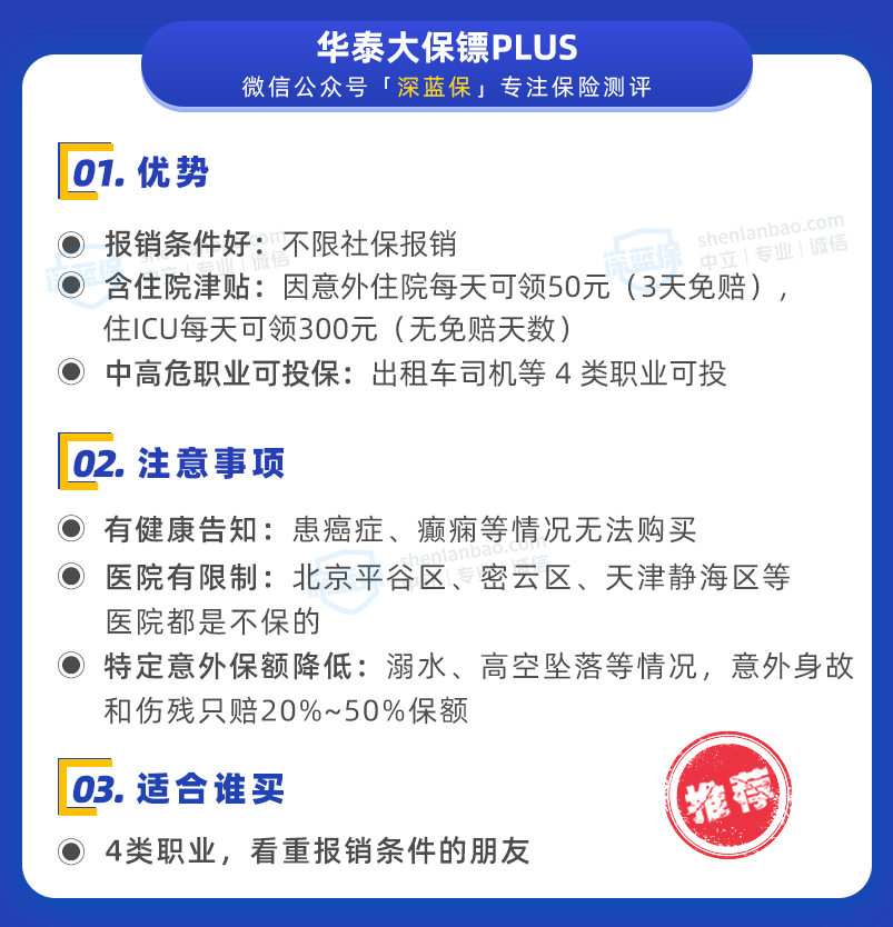 华泰大保镖 PLUS 4 类职业也能买,可以不限社保报销,具体优势和注意事项如下: