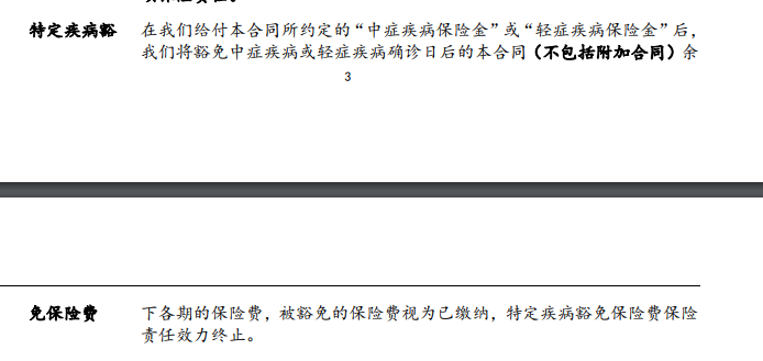 意味着,确诊了轻症或者中症,后续的保费都不用交了,保障依旧在。