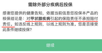 比如,我们在文章开头提到的这位朋友,因为之前检查出甲状腺结节 2 级,且并未手术,投保某医疗险时得出的核保结论是:除外甲状腺疾病。