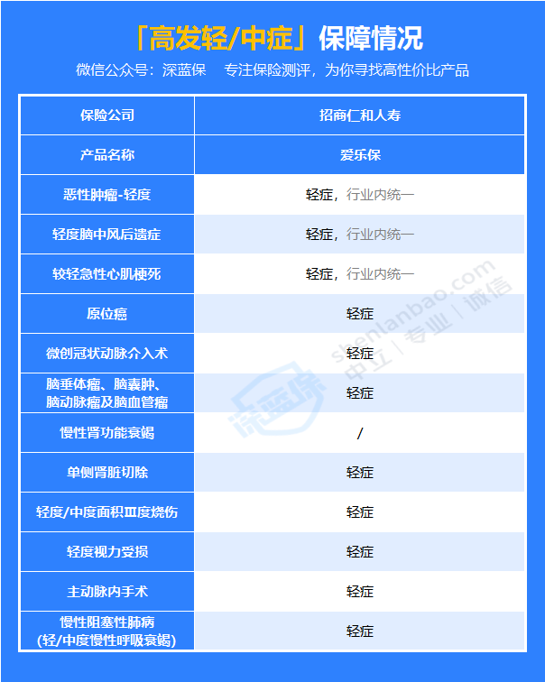 无论是轻症还是中症,招商仁和爱乐保终身重疾险的赔付比例都达到了市场标准。