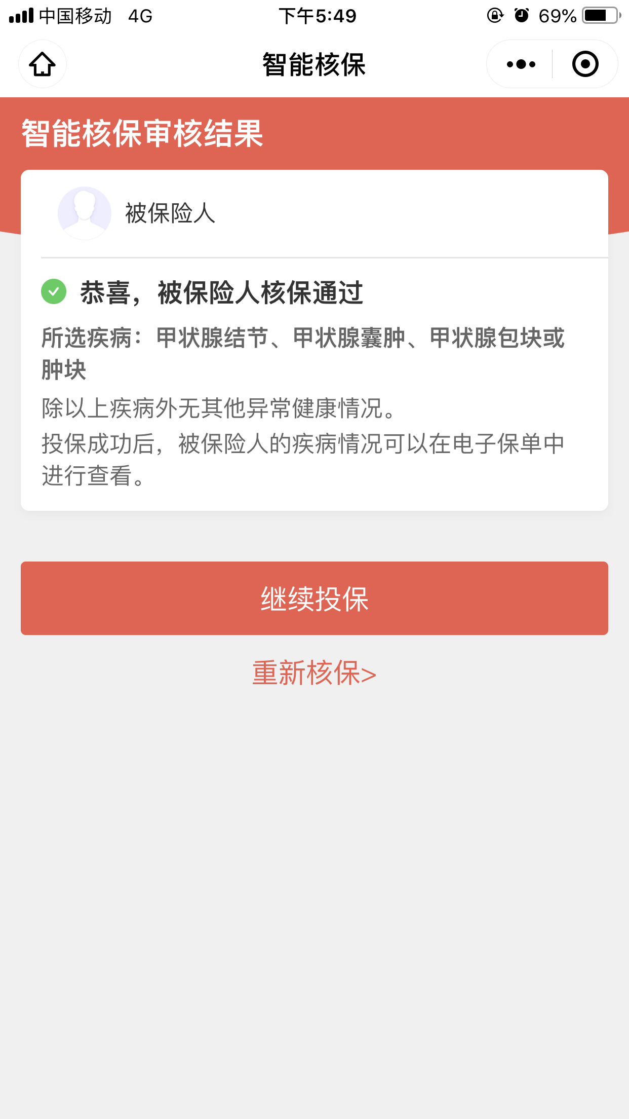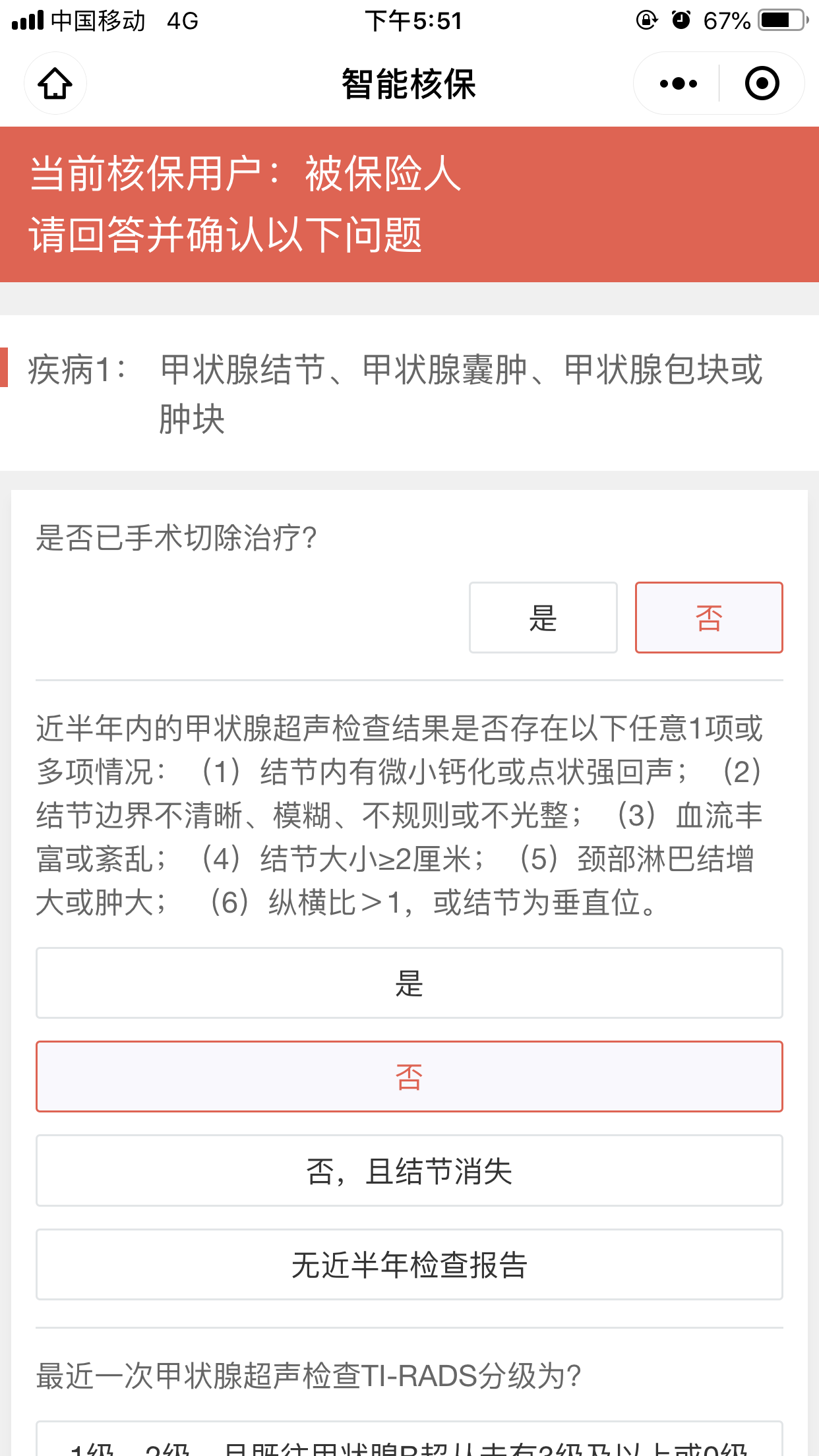 提醒一下,小米综合意外 2020 投保是有健康要求的,不过限制的是恶性肿瘤、冠心病等比较严重的疾病,陈先生的甲状腺结节不影响投保。