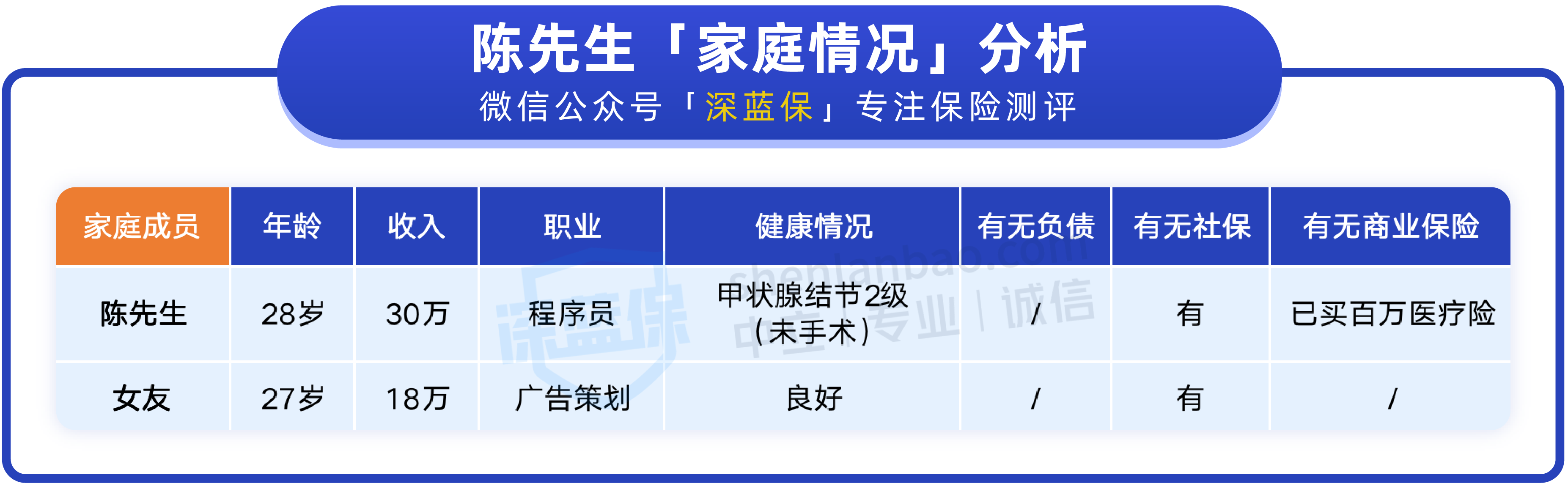 他觉得买保险这事儿不能再拖了,于是找到我们,想要为自己和女友配置好保障。