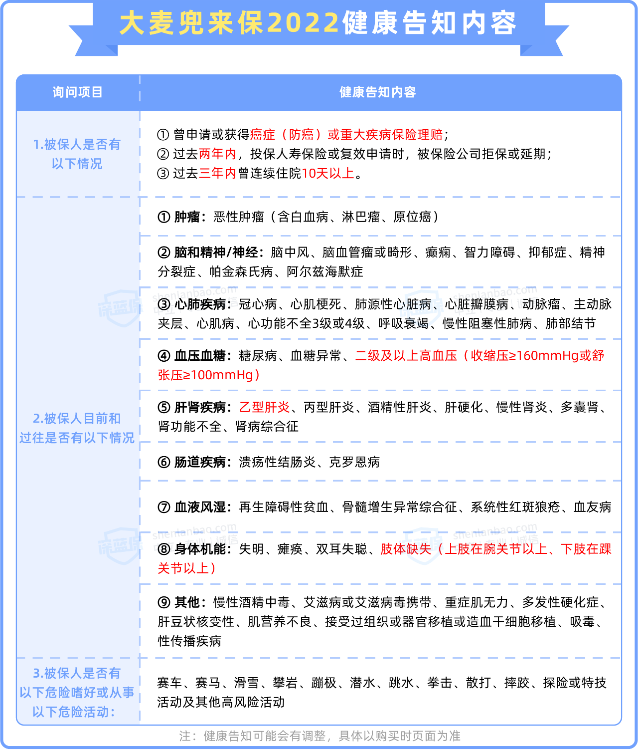 寿险的健康告知一般比较简单,接下来一起看下 大麦兜来保 2022 的健康告知都问了哪些内容: