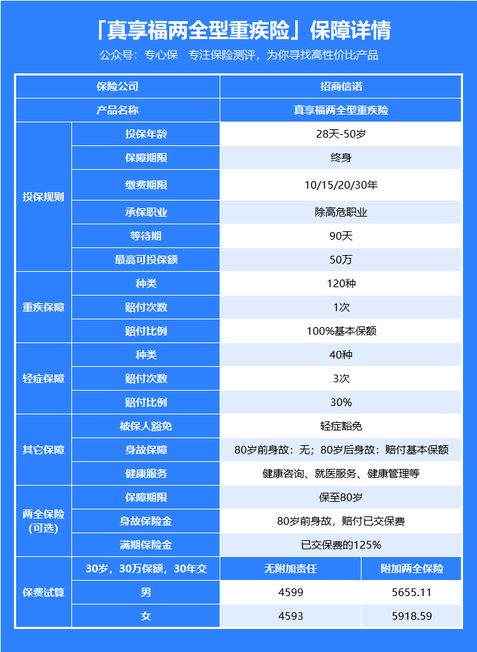 真享福两全型重疾险,是中美合资公司——招商信诺推出的一款互联网产品。